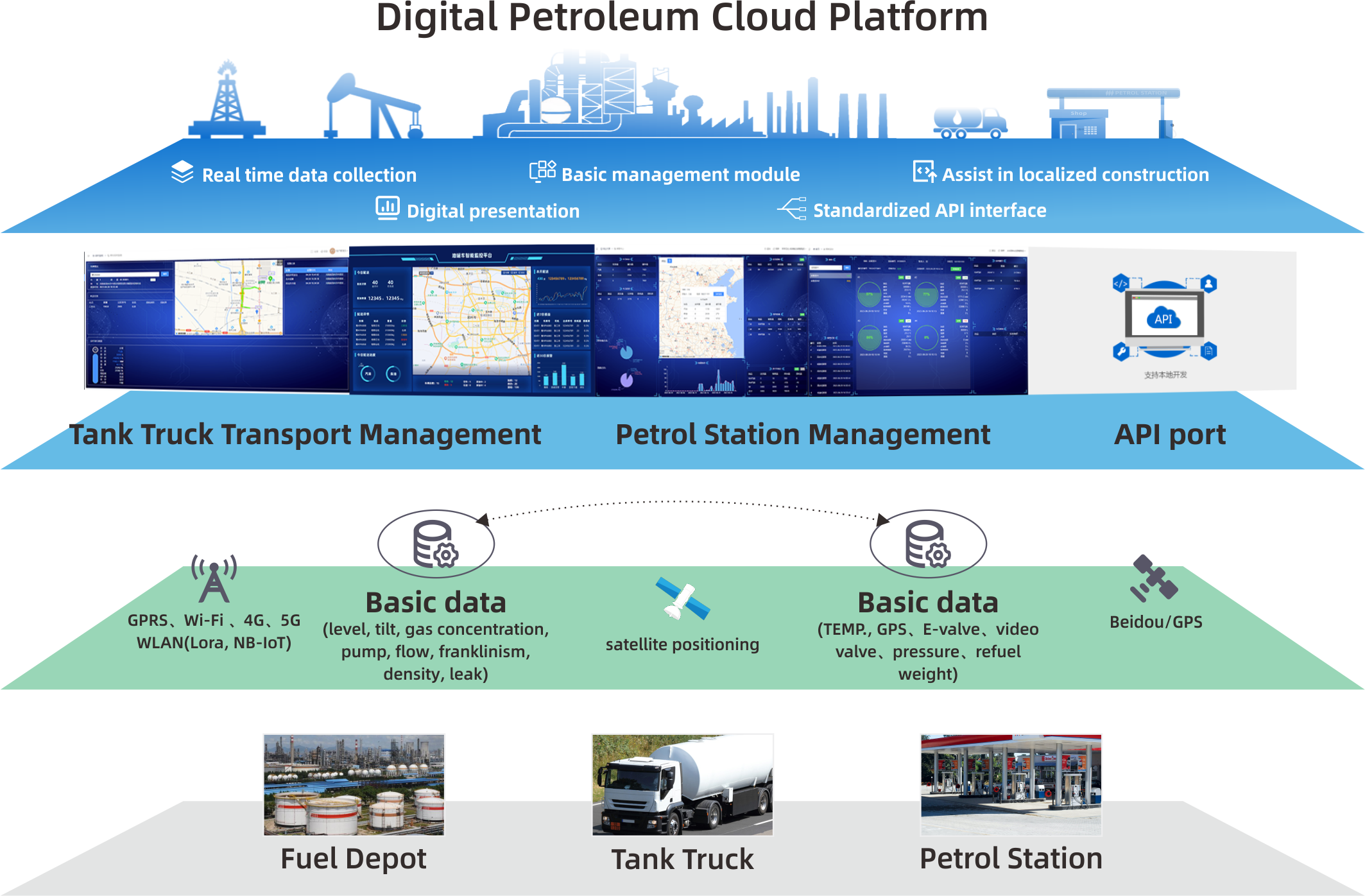 The fuel management cloud platform follows the design principles of standardization, integration, and reliability, supported by standardized, integrated, and intelligent cloud services, to achieve full coverage of chain data and provide basic data services for refined, digital, and comprehensive management of oil products.