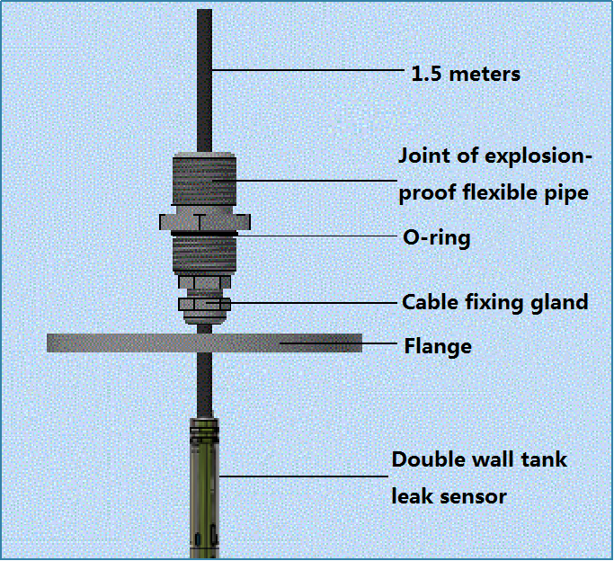 4) Loosen the cable fixing gland on the joint of explosion-proof flexible pipe, make the communication cable of the sensor pass through the joint of explosion-proof flexible pipe, and lead out to a length of 1.5 meters, tighten the cable fixing head, so that the communication cable cannot move up and down.