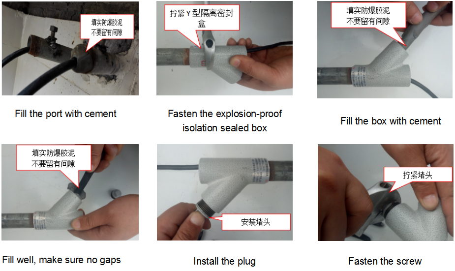 3) Fill the explosion-proof isolation sealed box with explosion-proof cement.